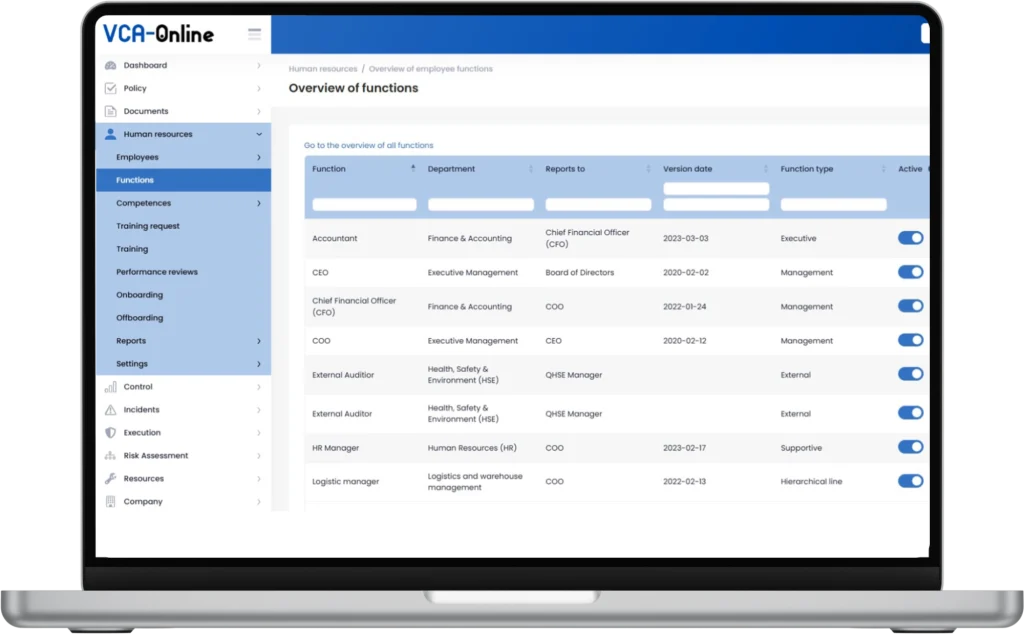 Met actuele updates, gestructureerde evaluaties en duidelijke inzichten versterkt VCA-Online het competentiebeheer en ondersteunt het veilige, conforme en goed georganiseerde activiteiten.